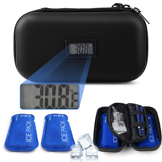Insulin Cooler Travel Case with Thermometer – TSA Approved Medication Cooling Bag for Insulin Pens & Diabetic Supplies – Black